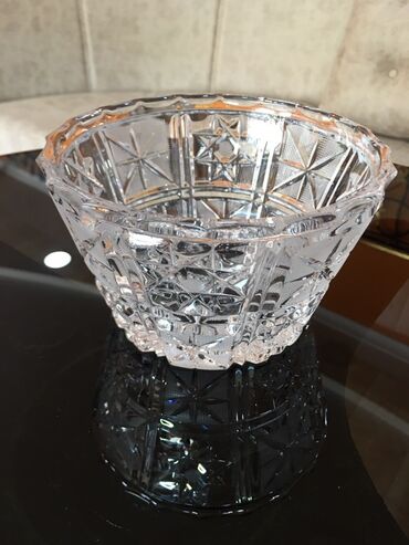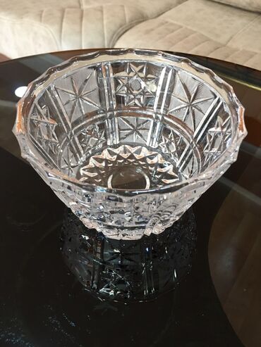 Crytal gallery markalı ayaqlı kristal qab. Qızılı haşiyəli, zövqlü və ağır görünüşlüdür. Meyvə, şirniyyat qoymaq üçün idealdır. Yenidir heç vaxt istifadə olunmayıb. Çat, qırıq, heç bir problemi yox...