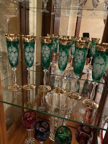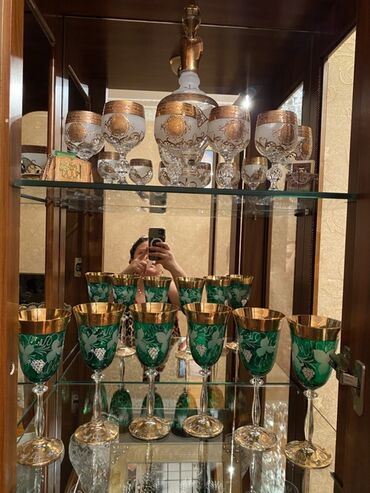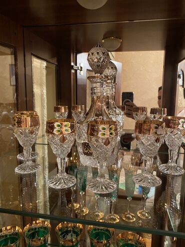 Zərif dekorativ sürahi və stəkan dəsti Kompot üçün 6 stəkanı ilə -