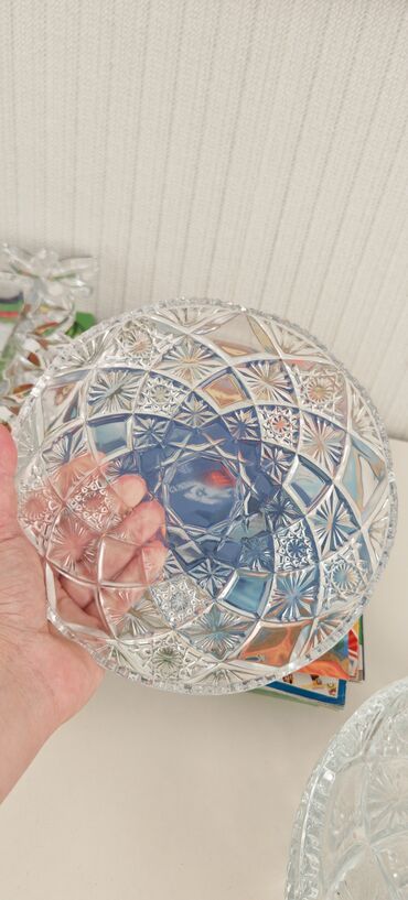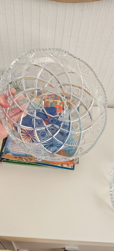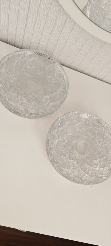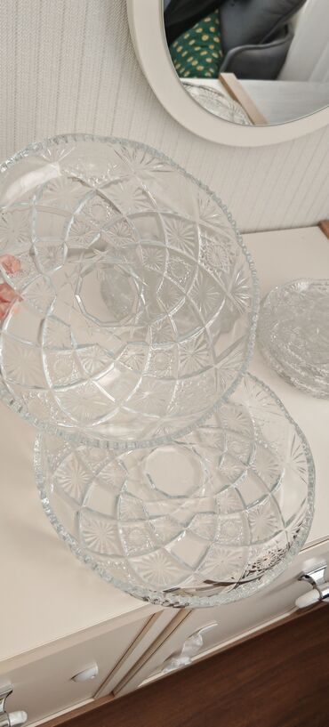Bu dəstə şüşə materialdan hazırlanmış müxtəlif ölçülü yeddi ədəd qab daxildir. Hər bir qabın kənarı dalğalı formada, dibi isə gül naxışlıdır. Dəstə bir böyük qab və altı kiçik qab daxildir. Bu qabl...