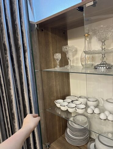 - Ölçü haqqında təsvir: hündür vitrin tipli mebel, dərinliyi qab-qacaq yerləşdirməyə uyğun, geniş ön vitrin sahəsi