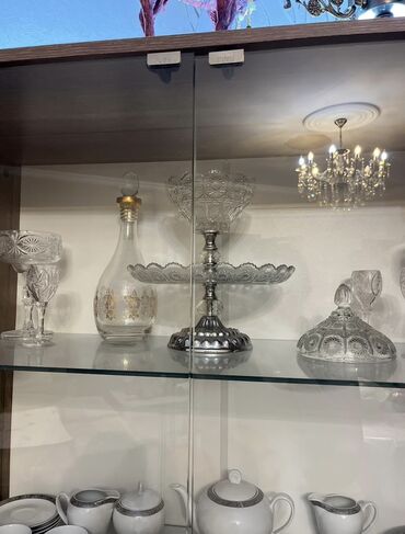 - 2 geniş şüşə rəf – çex kristalı, qədəhlər, dekanter və şirniyyat qablarının sərgilənməsi üçün uyğundur