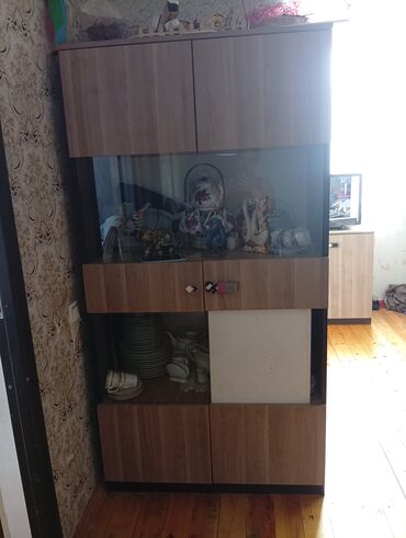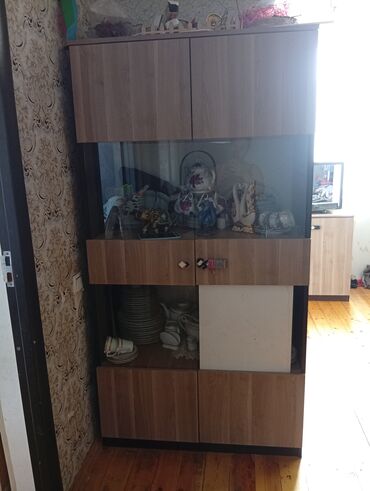 Bu, müasir dizaynlı, funksional displey şkafıdır. Şkafın üst və alt hissəsində taxta qapıları olan bağlı bölmələr, orta hissədə isə şüşə qapıları olan geniş displey sahəsi mövcuddur. İçərisində qab-qacaq, bəzək əşyaları və digər əşyaları səliqəli şəkildə saxlamaq üçün çoxlu rəflər var. Açıq bej rəngli taxta və şəffaf şüşə kombinasiyası ilə bu şkaf həm saxlama, həm də əşyalarınızı nümayiş etdirmək üçün ideal seçimdir. Dörd qapılı və çoxsaylı rəfləri ilə hər otaqda istifadəyə uyğundur.zal üçündür şüşəsini biri qırılıb evdə çox yer olmadığı üçün satılır şüşəsi heç 5 manat eləmir qiyməti tezesini kəsdirmək 20 Ci sahədə yerləşir Madeyra mebel məxsusdu endirim yoxdu