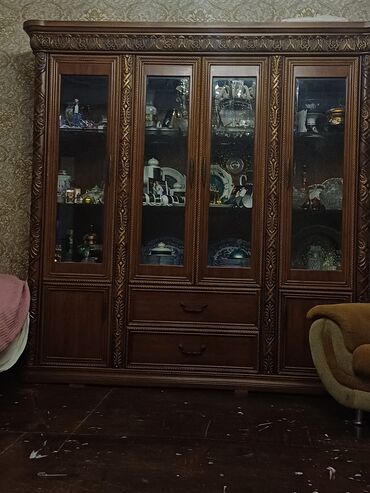 Bu vitrin şkafı həm dekorativ, həm də funksional bir əşyadır, kolleksiyalarınızı və ya digər əşyalarınızı sərgiləmək üçün idealdır. Yuxarı hissədə dörd şüşə qapı, aşağı hissədə isə dort çekməcə mövcuddur. Hər bir şüşə qapı şaquli oymalarla bəzədilmişdir və şkafın yuxarı hissəsində də mürəkkəb oyma detalları var. Tünd qəhvəyi rəngdə və klassik dizayna malikdir, bu da onu müxtəlif interyerlər üçün uyğun . DUSEN YERI OLACAK