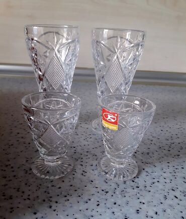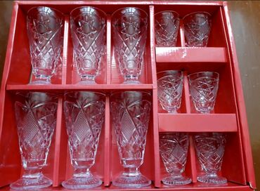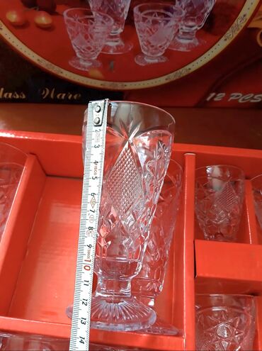Qədəh dəsti – şüşə - Rəng: tünd boz (smoky/füme) - Material: şüşə - Dizayn: fasetli (kristalvari naxışlı), qısa saplı, dairəvi dayaq - Qutuda təqdim olunur - Miqdar: 6 ədəd iri qədəh + 6 ədəd kiçi...