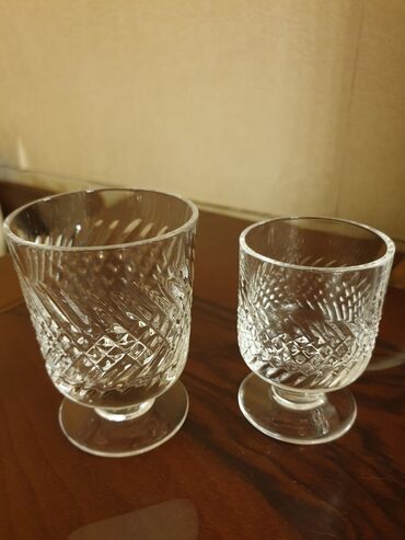 6 ədəd kəsimli şüşə qədəh dəsti - Material: şəffaf kəsimli şüşə/kristal üslubunda - Dizayn: klassik geometrik naxışlar, saplı-stəkanlı forma, şüalı dib naxışı - Ölçü: likör/aperitiv üçün kiçik həc...