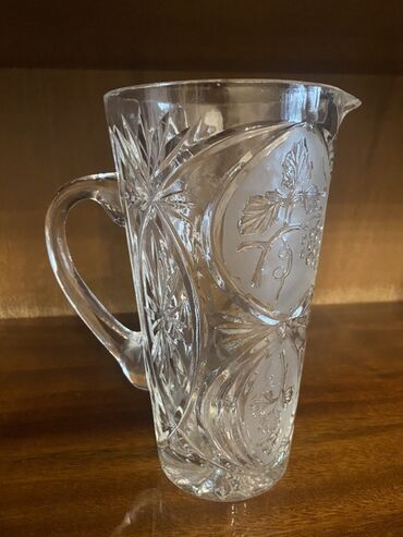 Şəffaf xurustal şüşədən hazırlanmış, üzərində üzüm naxışları olan qrafin. Qrafinin tutacaqlı dizaynı rahat istifadə təmin edir və üzərindəki buzlu üzüm motivləri estetik görünüş verir. Hər hansı bir masa üzərində içkilərin təqdimatı üçün uyğundur.
