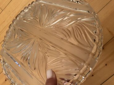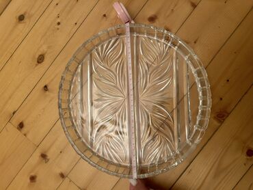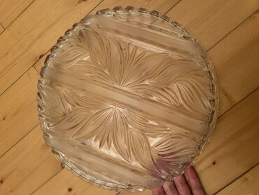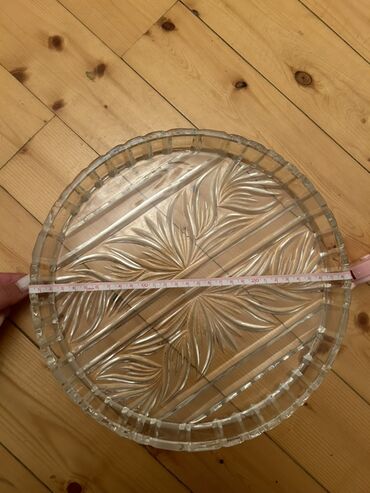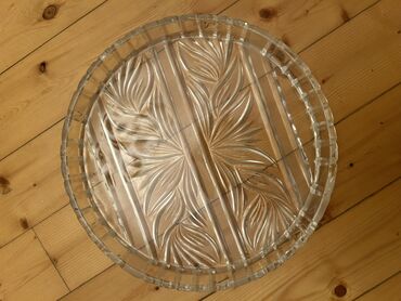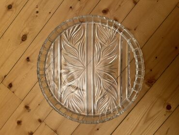 Şüşə servis sinisi – dairəvi, oyma naxışlı - Material: qalın, şəffaf