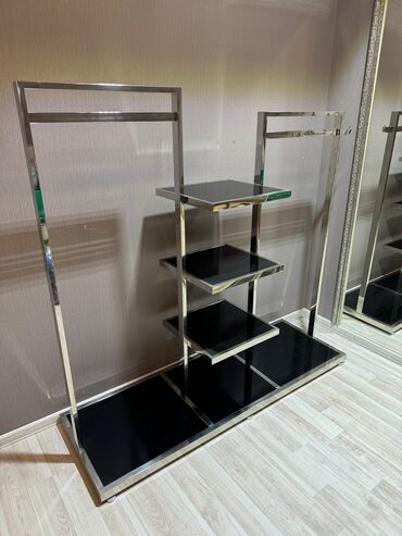 Qarderob və ümumi ev üçün, geyim dükanları üçün nəzərdə tutulmuş asılqan. Materialı təmiz nikeldi. Şüşəsi qalın və dözümlü.Ayaqqabı belə yerləştirmə olar, onun üçündə nəzərdə tutulub. 5 ay istifadə olunub.Heçbir deffekti yoxtu, cızığı və ya sınığı yoxtu. Alınıb 480 Azn, satılır 230 Azn-ə. Real alıcı votsap vasitəsi ilə yazsın.