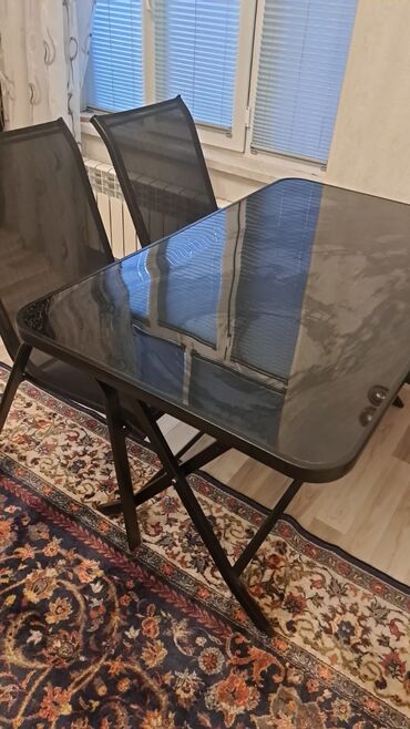 Şüşə stol və 4 ədəd oturacaq dəsti