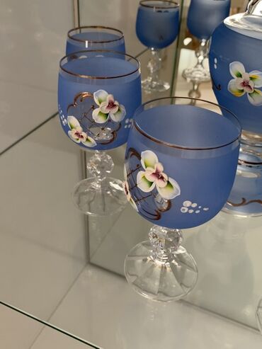 Qab-qacaq dəsti – zövqlü süfrələr üçün - 12 ədəd şüşə stəkan: Qızılı zolaqlı dekor, rellef naxışlar. Hər biri ayrıca bölmələrdə qablaşdırılıb. - Kristal şirniyyat/ meyvə qabı: Şüşə kasanın kənarla...