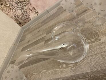 - Material: qalın, şəffaf şüşə; qədəhlər mat teksturalı