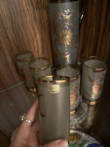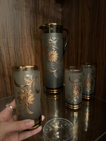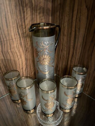 Qədimi Qızılı naxışlı şüşə sürahi və stəkan dəsti
