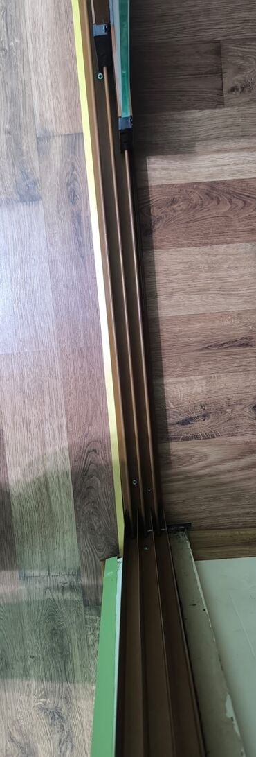 - Alüminium çərçivə və kasalı perimetr, bürünc/qızılı tonlu profil.