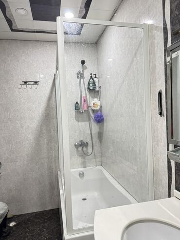 - Daxili avadanlıq: əl duşu, divar kranı, şüşə/metal rəf və askılar üçün qurğu.