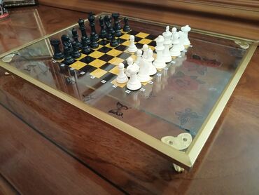 Dəst tam şəkildə: şüşə əsaslı taxta + ağ və qara fiqurlar. Dizaynı ilə diqqət çəkən, hədiyyə və kolleksiya üçün uyğun şahmat komplekti.