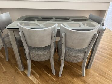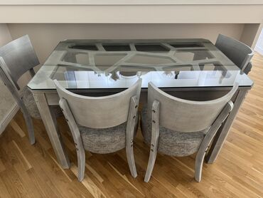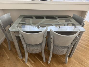 Şüşə üstlü yemək masası və 4 ədəd stul dəsti