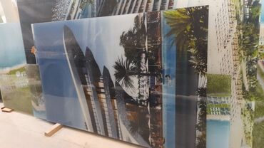 Şəkillərdə real çap nümunələri və iriformat şüşə panellər təqdim olunub. Fərdi ölçü və dizaynla dekorativ şüşə panel sifarişi üçün uyğun seçimdir.