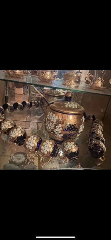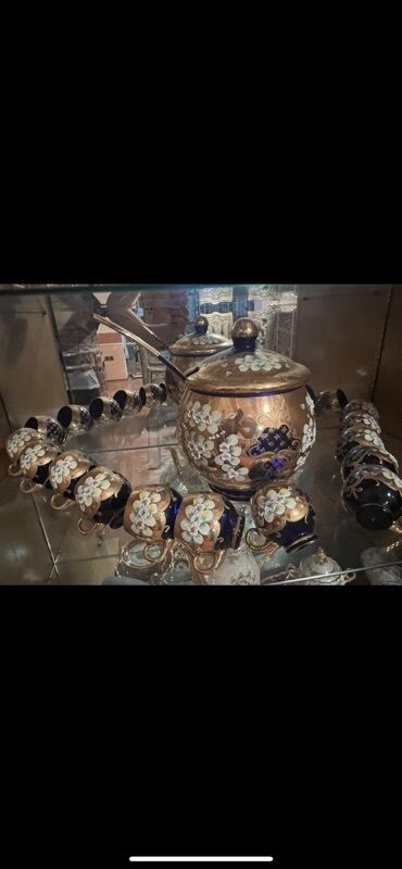 Zərif şüşə/qızılı çay-punş dəsti