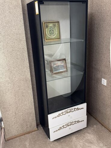 - Material: Ön və yanları tam şüşə, orta hissədə 2 ədəd şüşə rəf (3 səviyyəli yerləşdirmə imkanı)