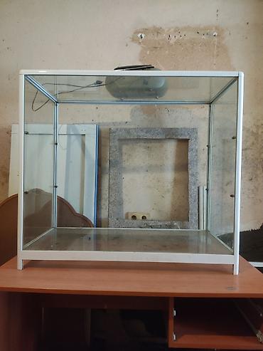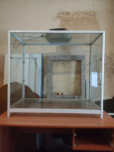 Şüşə vitrin - Material: şəffaf qalın şüşə, metal/plastik ağ karkaslı