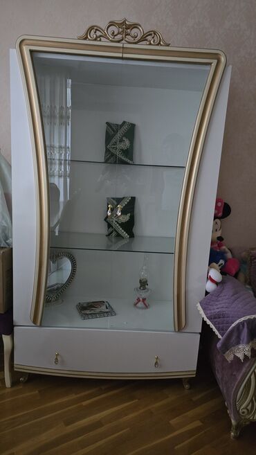 Klassik zövqlü interyerlərdə vitrində qablar, biblilər, fotolar və suvenirlərin nümayişi üçün ideal mebel.