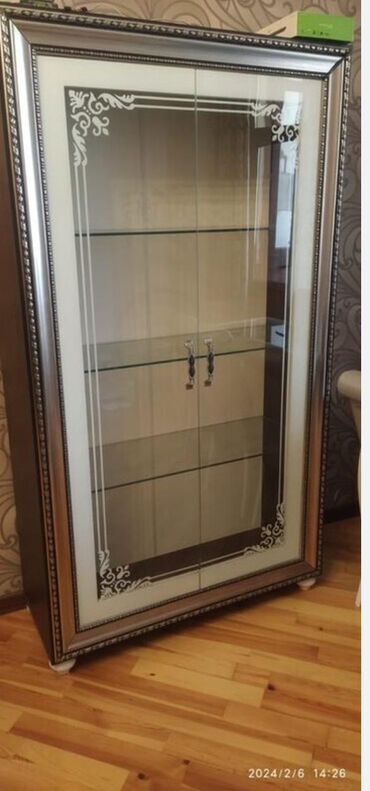 - Üstünlüklər: işıqlı məkan effekti yaradan şəffaf rəflər, zərif klassik ornamentlər, möhkəm və stabil konstruksiya, asan təmizləmə