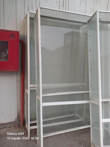 Mağaza üçün vitrin/stand – taxta bölməli, təkərli - Material: ağac