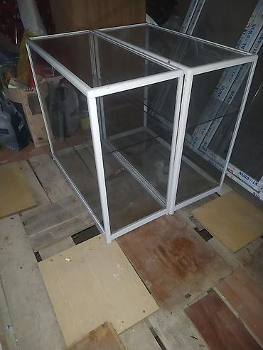 Şüşə vitrin/sergı stendi 2 ədəd - Material: temperli şüşə panellər