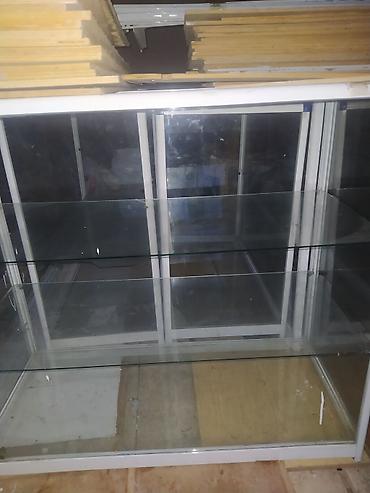 Mağaza vitrini – şüşə üstlü vitrin kassası - Material: ağ laminat korpus, üst hissə şəffaf temperli şüşə vitrin - Ön tərəfi tam şüşə panel – məhsulların aydın sərgilənməsi üçün - Arxa hissədə geni...