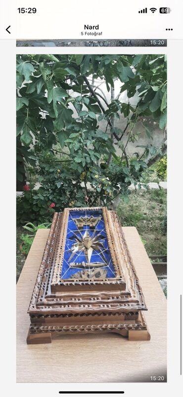 Yeni antikvarƏl işı nərd taxtası – ağac oyma çərçivəli, şüşə vitrinli dizayn.