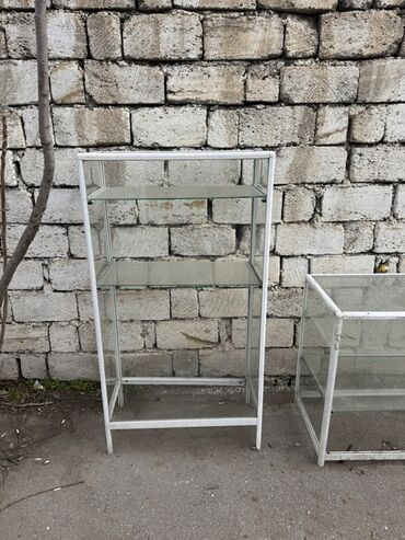 - Konstruksiya: hər iki vitrində şəffaf yanlar və ön hissə, içəridə şüşə rəflər