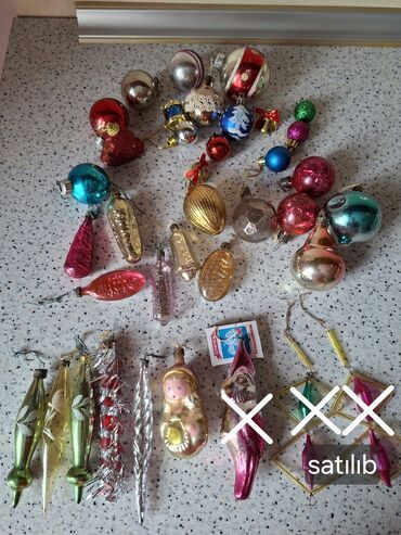 Məhsul: Yeni il ağacı üçün bəzək dəstəsi – qarışıq kolleksiya.shushe sovet oyuncaqlarda var ucinde Təsvir: - Şəkillərdə göründüyü kimi müxtəlif formalı və rəngli şüşə və plastik oyuncaqların böyük...
