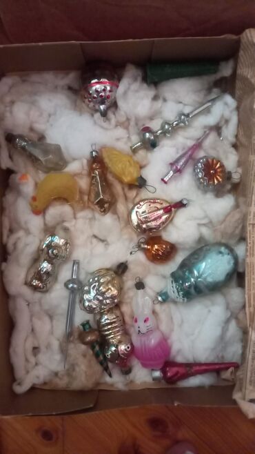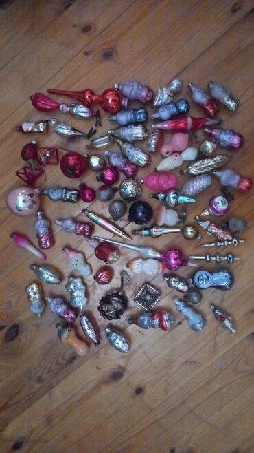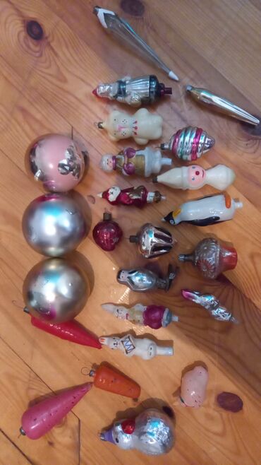- Şüşədən hazırlanmış retro bayram bəzəklərinin müxtəlif komplekti.
