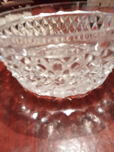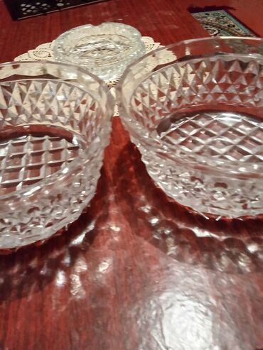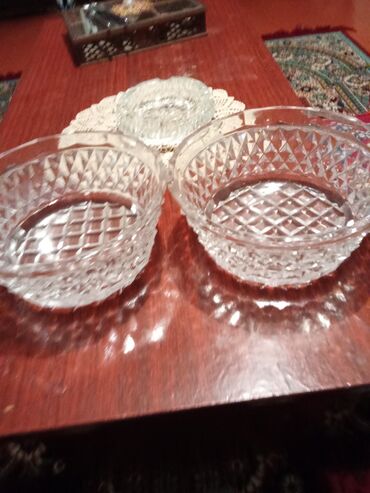 - 2 ədəd dərin, dairəvi qələmkəsmə naxışlı şüşə/kristal qab