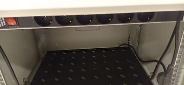 - Enerji paylanması: üst hissədə açma/söndürmə düyməli 6 yuvalı 230V PDU (ştepsel listi) və qoşulu kabel