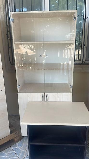 - Quruluş: Üst hissə şüşə qapılı vitrin (2 rəfli); alt hissə qapalı dolab (2 qapı, daxildə rəf).