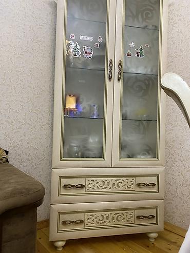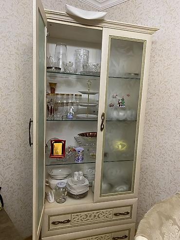 - Material: ağac karkas, şüşə vitrin qapıları (naxışlı, mat efektli), metal tutacaqlar