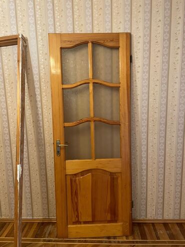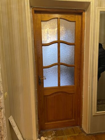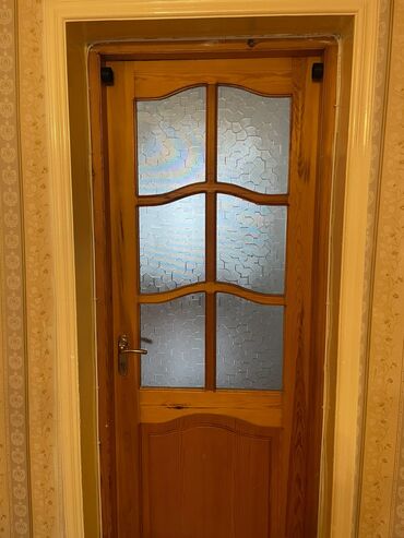 Qeyd: Şəkillərdə hamamda görünən qaz su qızdırıcısı elan predmetinə daxil deyil. Bu elan yalnız təsvir edilən taxta şüşəli iç qapı üçündür.