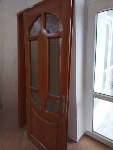 Taxta otaq qapısı - Material: təbii ağac (şabalıd) - Şüşə
