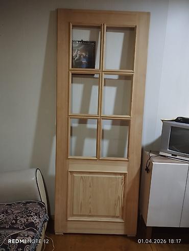 Şüşəli taxta qapı - Material: təbii ağac (şah damarları görünən)
