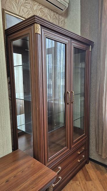 Şüşəli vitrin dolabı - Material: Təbii ağac teksturasına malik