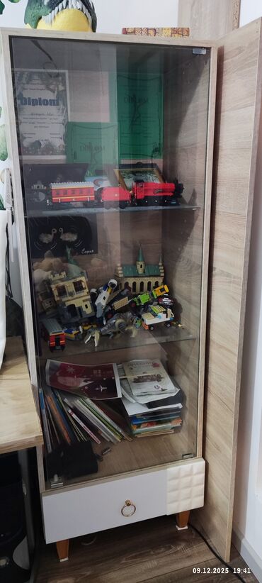 - Daxili quruluş: 3 səviyyə vitrin hissə (2 ədəd şüşə rəf) – kitab, kolleksiya, oyuncaqlar və dekor üçün uyğundur