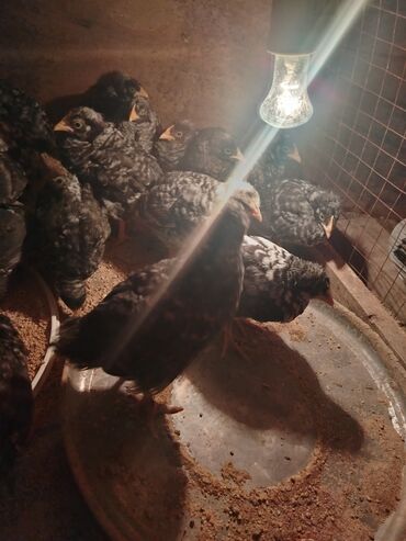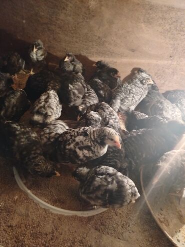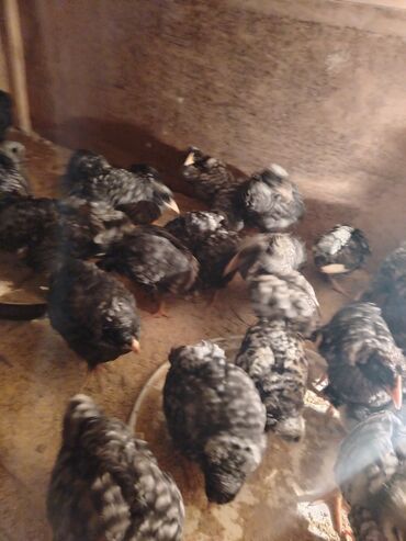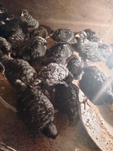 2 ay 1 həftəlik sağlam cücələrdi. vaksinləri və qurd dərmanlrı verilib. Təsvir: - Şəkillərdə çoxsaylı sağlam cücələr göstərilir; ağ, boz və qara ləkəli rəng çalarları mövcuddur. - Qapalı, saman al...