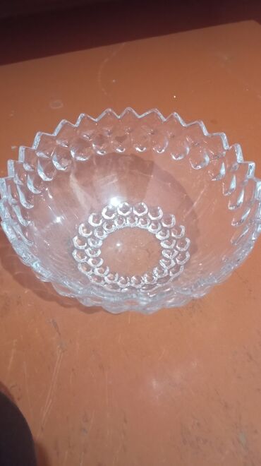 1) Dairəvi kasa – kənarları dişli, mərkəzdə muncuqvari halqa naxışları. Salat, meyvə, şirniyyat üçün uyğundur.
