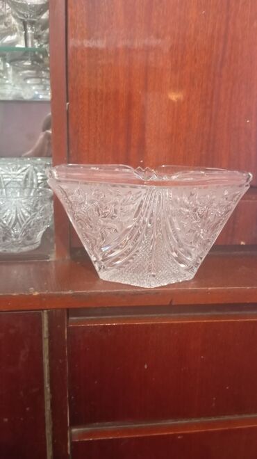 3) Altıbucaqlı formalı vazaya-bənzər qab – yanlarında gül reliefləri, ön-arka hissədə pərdəvari xətlər və xırda tor naxışlar. Konfet, peçenye və ya dekor üçün ideal.