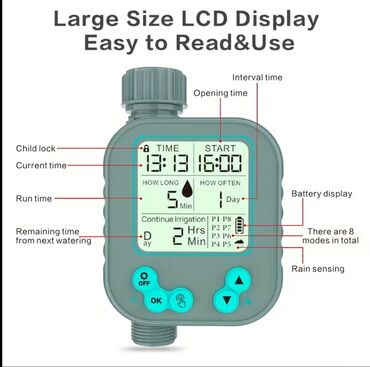 Suvarma taymeri. Bağların, bitkilərin suvarılması, çənlərin doldurulması üçün nəzərdə tutulub. Asan proqramlaşdırılır. Müxtəlif rejimləri var, 2 çıxışlı. Müxtəlif modellər mövcuddur. Qiymət 1-cı şə...