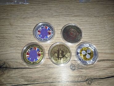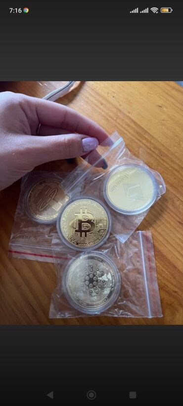 Suvenirli kripto valyutlar: Bitcoin, Ethereum, Solana və s. kriptovalyutalar teqlidi;