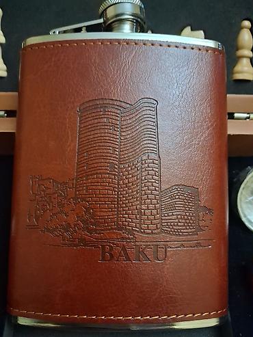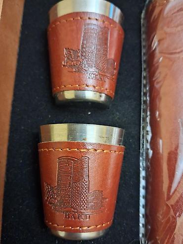 - İçki dəsti: paslanmayan poladdan kolba (flask) və 4 ədəd qədəh. Hər biri qəhvəyi dəri örtüklə, üzərində “BAKU” və şəhər təsviri relyefli naxış.