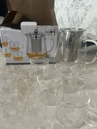 Şüşə çay dəsti - 5 hissəli set: 1 ədəd şüşə çaydan + 4 ədəd şüşə fincan - Çaydanın daxilində paslanmayan poladdan incə gözlü süzgəc/filtr (çıxarılan) - Şəffaf istiliyədavamlı şüşə gövdə, şüşə qulp...