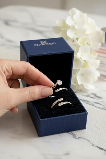 YeniSvarovski üzüklər 2 eded tek tek ve cüt taxmaq olur originaldı şəkili cevirerek baxa bilərsiz tezedi öz korobkasında -100m